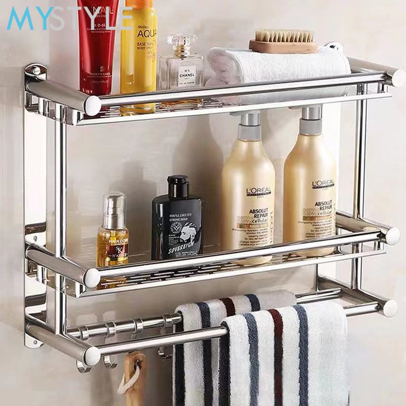 RAK GANTUNG STAINLESS DINDING 2 TINGKAT TEMPAT SABUN RAK HANDUK KAMAR MANDI SERBAGUNA ANTI KARAT