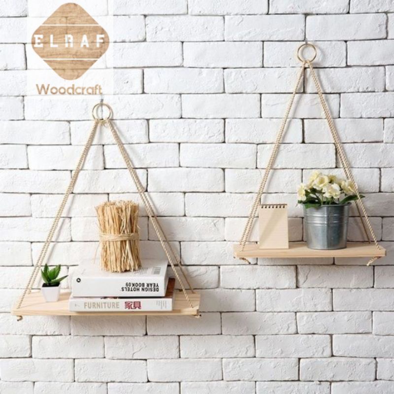 Kelebihan - Kelebihan membeli (PROMO MURAH) Rak Dinding Gantung Ambalan Tali Rak dinding kayu+tali+ring di Toko ini
