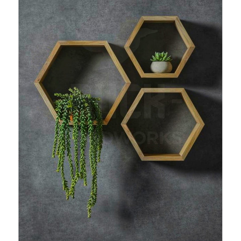 Hexagonal Kayu, Dekorasi dan Rak Dinding , Kaca Hexagonal Natural Jati Belanda
