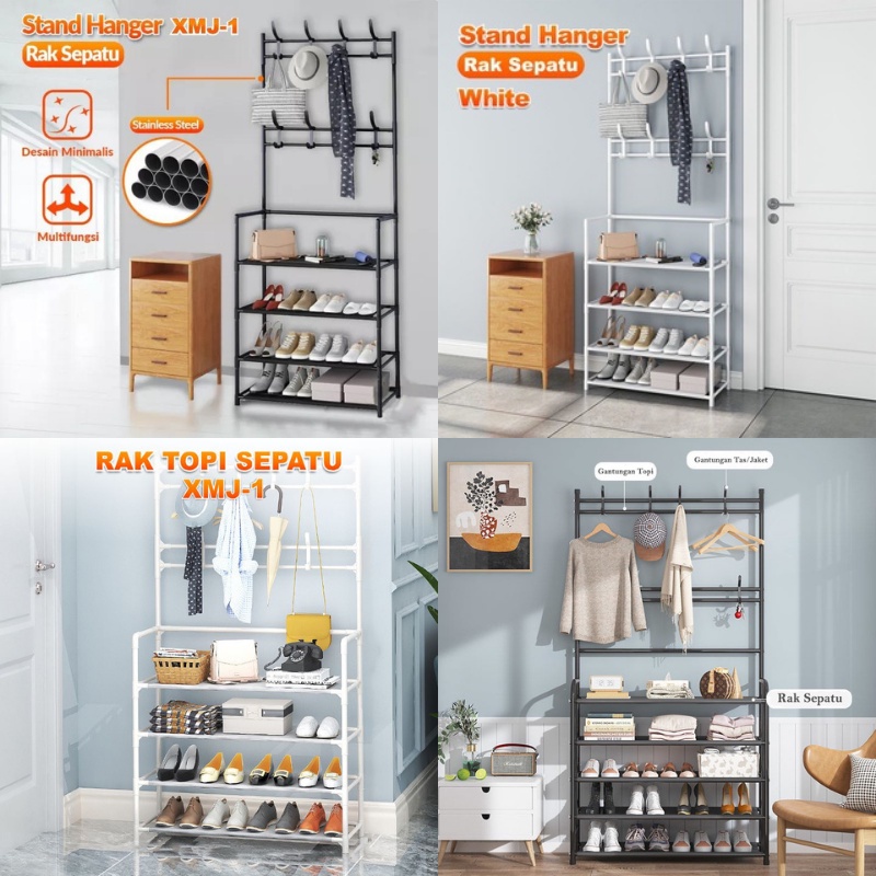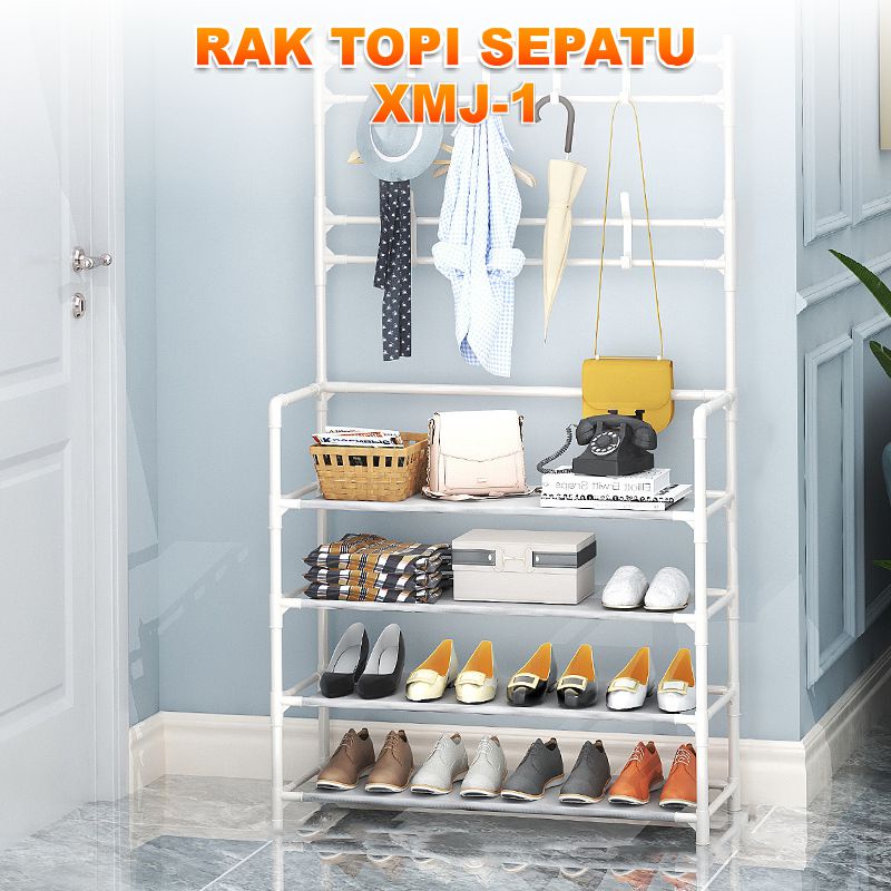 Rak penyimpanan 4 Tingkat Hitam Silver Rak Dapur Microwave Kamar Rak Serba Serbi Rak Sepatu rak gantungan Stand Hanger Baju Rak Sepatu Rak Gantung Pakaian Tas Topi Rak Portable Multifungsi XMJ-1