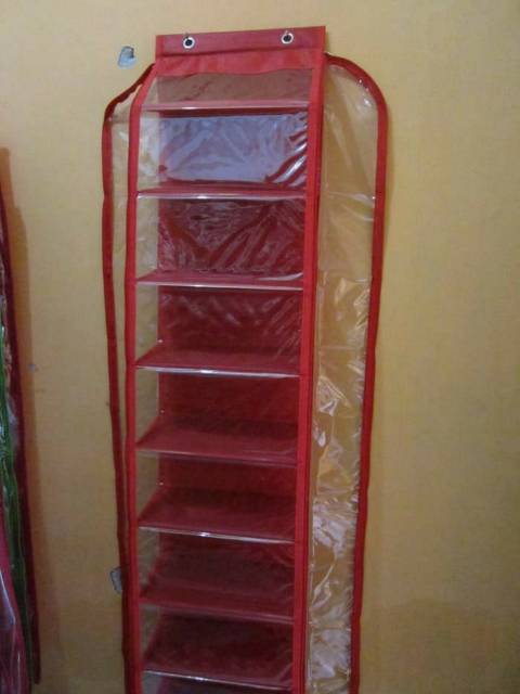 Review Rak tas polos 5 kolom ritsleting / rak tas Gantung fill triplek terbaru